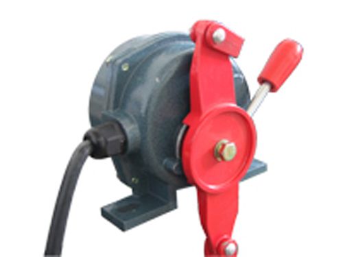 工作原理:當(dāng)膠帶運(yùn)輸機(jī)現(xiàn)場(chǎng)緊急事故時(shí),在沿線任意位置牽動(dòng)系在掛耳上的鋼絲繩,迫使機(jī)內(nèi)凸輪轉(zhuǎn)動(dòng)而驅(qū)動(dòng)微機(jī)開(kāi)關(guān)動(dòng)作,發(fā)出停機(jī)信號(hào),達(dá)到停機(jī)效果,防止事故的擴(kuò)大。